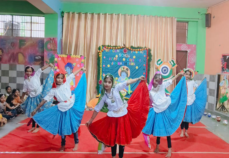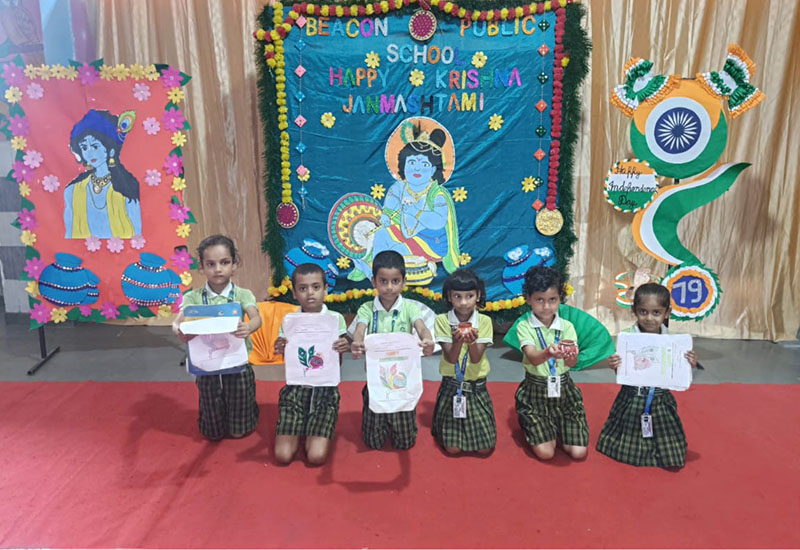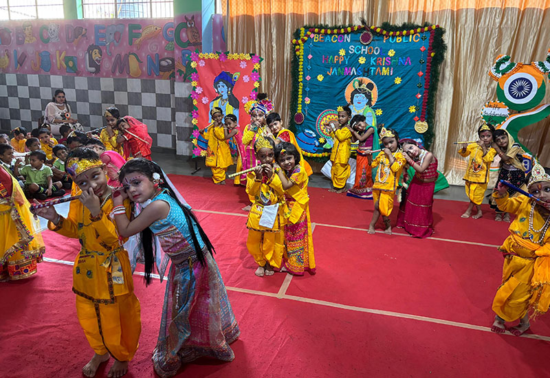 Beacon Global School celebrated Krishna Janmashtami with devotion, joy, and enthusiasm, bringing the entire school community together in festive spirit. The celebration began with soulful bhajans and prayers, creating a spiritual aura. Students enthusiastically participated in cultural performances, including songs, dances, and skits depicting Lord Krishna’s childhood leelas. Teachers guided the students in understanding the values of truth, love, and humility taught by Lord Krishna.